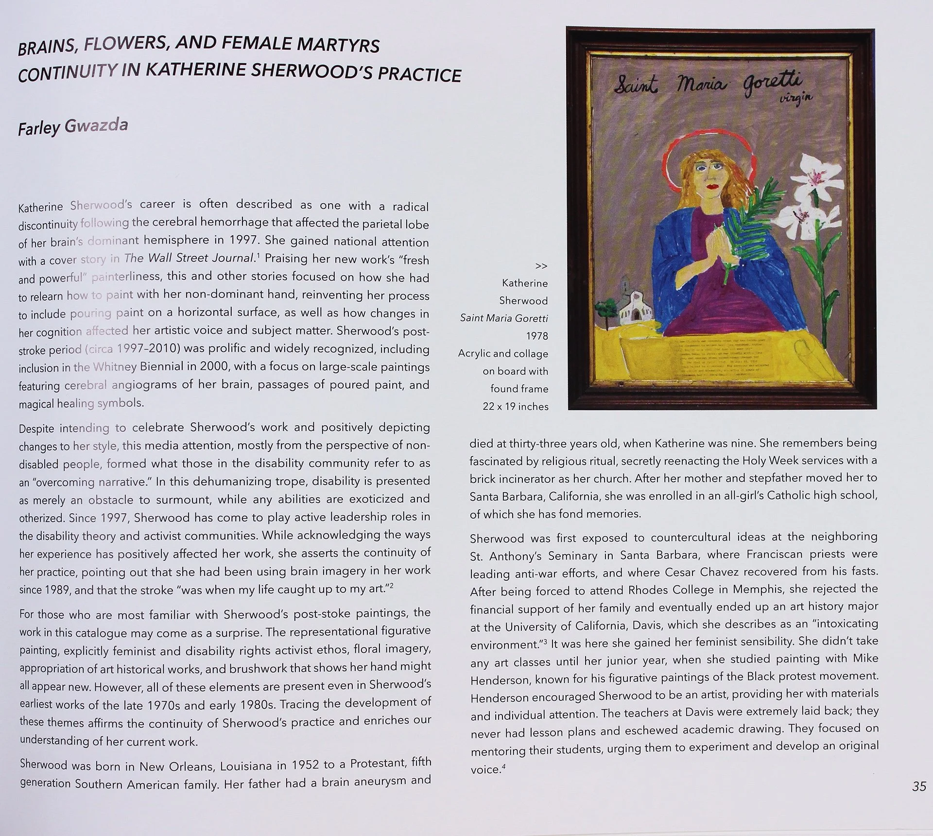 I was delighted to have been asked by painter Katherine Sherwood and her gallerists, George Adams, Walter Maciel, and Shannon Trimble, to write an essay for the new catalog, Katherine Sherwood: In the Garden of the Yelling Clinic, which has just been published.